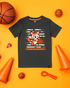 Dark grey cotton tee with a DTF-printed mascot graphic featuring puff-print basketball and embossed lettering. Fun, tactile, and sporty - built for play and smiles.